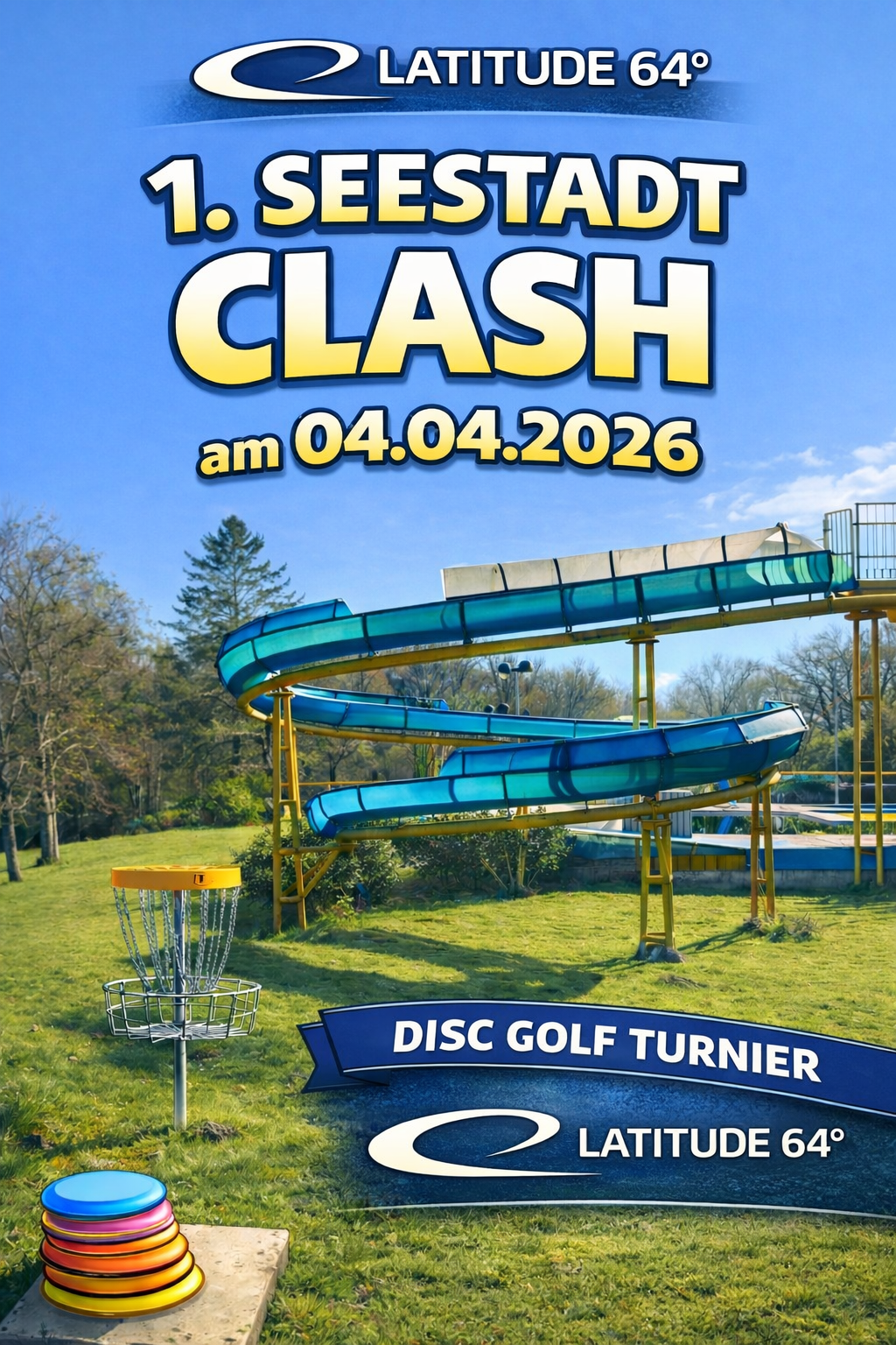 Der 1. Seestadt Clash findet am 04.04.2026 (Ostersamstag) statt. Es werden 9 Bahnen auf dem Gelände des Freibads sowie 9 Bahnen auf dem angrenzenden Fußballplatz gespielt. Es werden mehrere Par 4 Bahnen möglich sein. Das Caddiebook folgt im Februar.